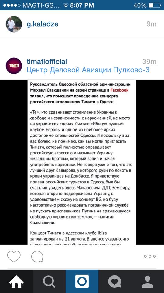 Вважаю Ібіцу кращим клубом Європи та однією з найбільших пам'яток Одеси. І оскільки я за вас вболіваю, не розумію як ви могли запросити Тіматі, який повністю виправдовує російську агресію та називає Україну "молодшим братом", який запив та почав вживати наркотики. Не кажучи вже про те, що це кращий друг Кадирова, у якого руки по лікоть у крові українців на Донбасі. Я вітаю приїзд російських туристів до Одеси,був би щасливий побачити тут Макаревича, ДДТ, Земфиру, яка відкрито підтримувала Україну, із задоволенням відвідаю концерт BG, але буду наполегливо радити прикордонній службі не впускати прибічників Путіна на вільну українську землю,яка бореться.