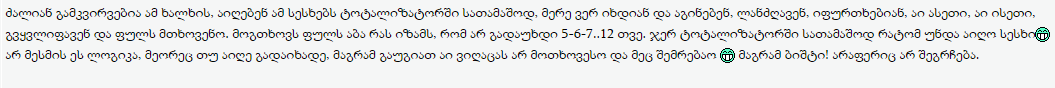 ეხლა დამირეკა ერთმა კლიენტმა შეიძლება დღეს ავიღოო. მეორემ ფორუმზე მომწერა ხვალ ან ვიყიდი ან არაო. ვინმეს თუ გული გწყდებათ აქაურებს ისევ გაქვთ შანსი