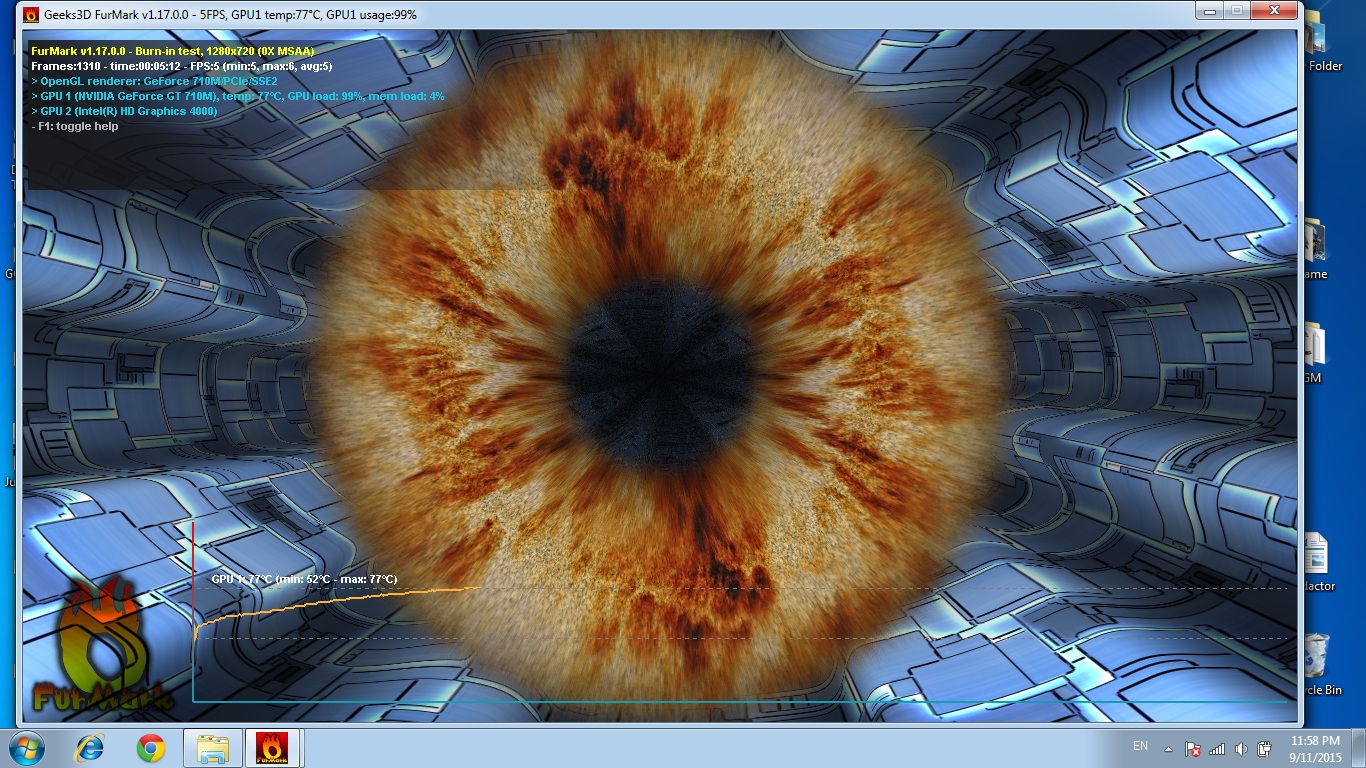 მანამდე მეორე კითხვა მაქვს ლეპტოპი უპრობლემოდ უმკლავდებოდა თამაშებს აქამდე რაც ვცადე და დიდ მონიტორზე ვთამაშობდი ფებურთს 2015, რამდენიმე დღის წინ შევაეღრთე და ცოტა ხნის თამაშის შემდეგ თიშავს კომპიუტერს, ერთხელ დააბლუსქრინა კიდეც მგონი, თამაშის დროს არ გაულაგავს არ გაუჭედავს უბრალოდ თიშავს, მერე ვცადე და ისე ჩავრთე მეორე მონიტორის გარეშე და ცოტა ხანში იქაც გამითიშა, შედარებით ძველ თამაშებს უმკლავდება მაგალითად 2013-ის ფეხბურთი და არ თიშავს, ხელის შეხებით არ იგრძონაბ რომ ცხელდება არადა თავის კრიტიკულ ტემპერატურაზე რმ ითიშება ეს ლეპტოპი კი ვიცი მაგრამ მანამდე არ მოსვლია მაგ თამაშზე, სტრეს ტესტი ვნახე რომელიღაც და გავუშვი, რამე თუ უნდა მიმეთითებინა არ ვიცი მაგრამ შედეგი აქ არის და შეხედე იქნებ რამე მითხრა