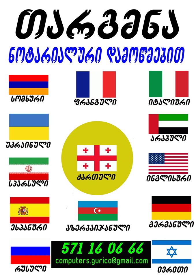 თარგმნა + ნოტარიალური დამოწმება