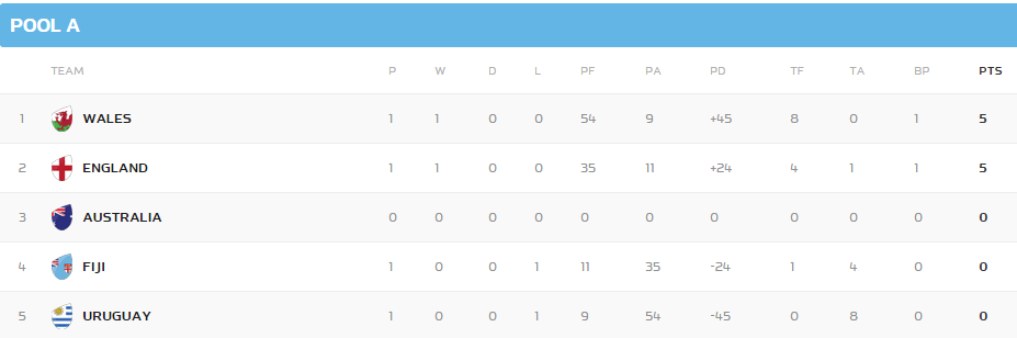 ა ჯგუფი - მსოფლიო თასი, ინგლისი, ავსტრალია, უელსი, ფიჯი, ურუგვაი