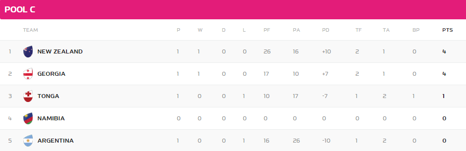 ც ჯგუფი - მსფლიო თასი, საქართველო, ახალი ზელანდია, არგენტინა, ტონგა, ნამიბია