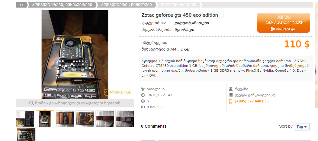 ZOTAC GeForce GTS 450 ECO Edition, იყიდება