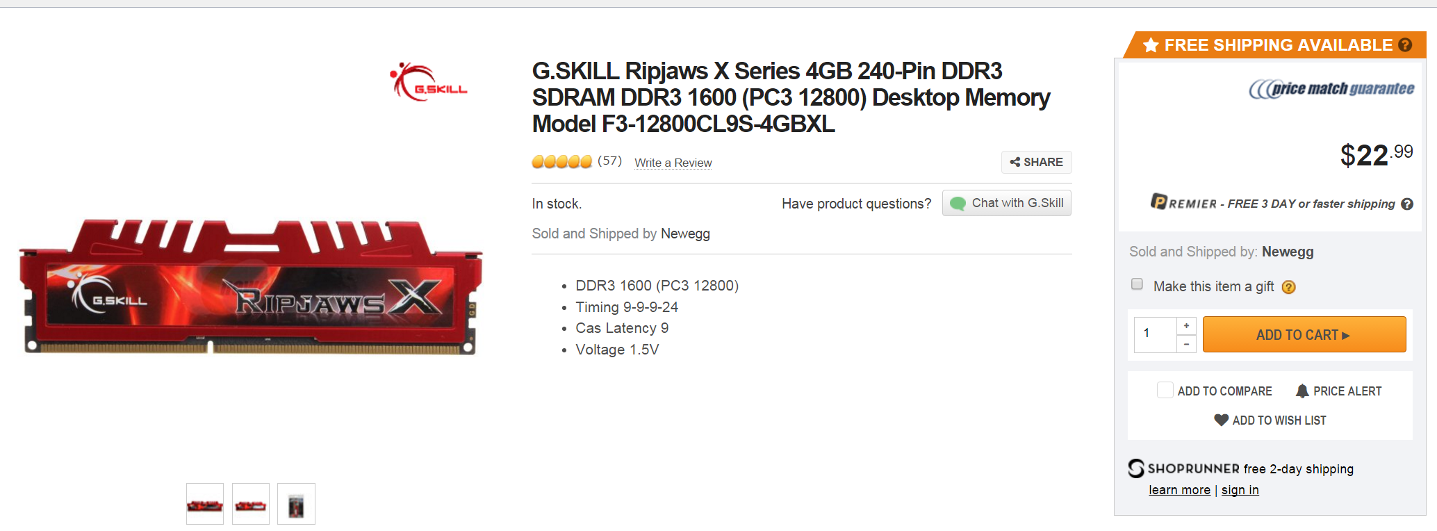 G.SKILL Ripjaws X Series 4GB 240-Pin DDR3