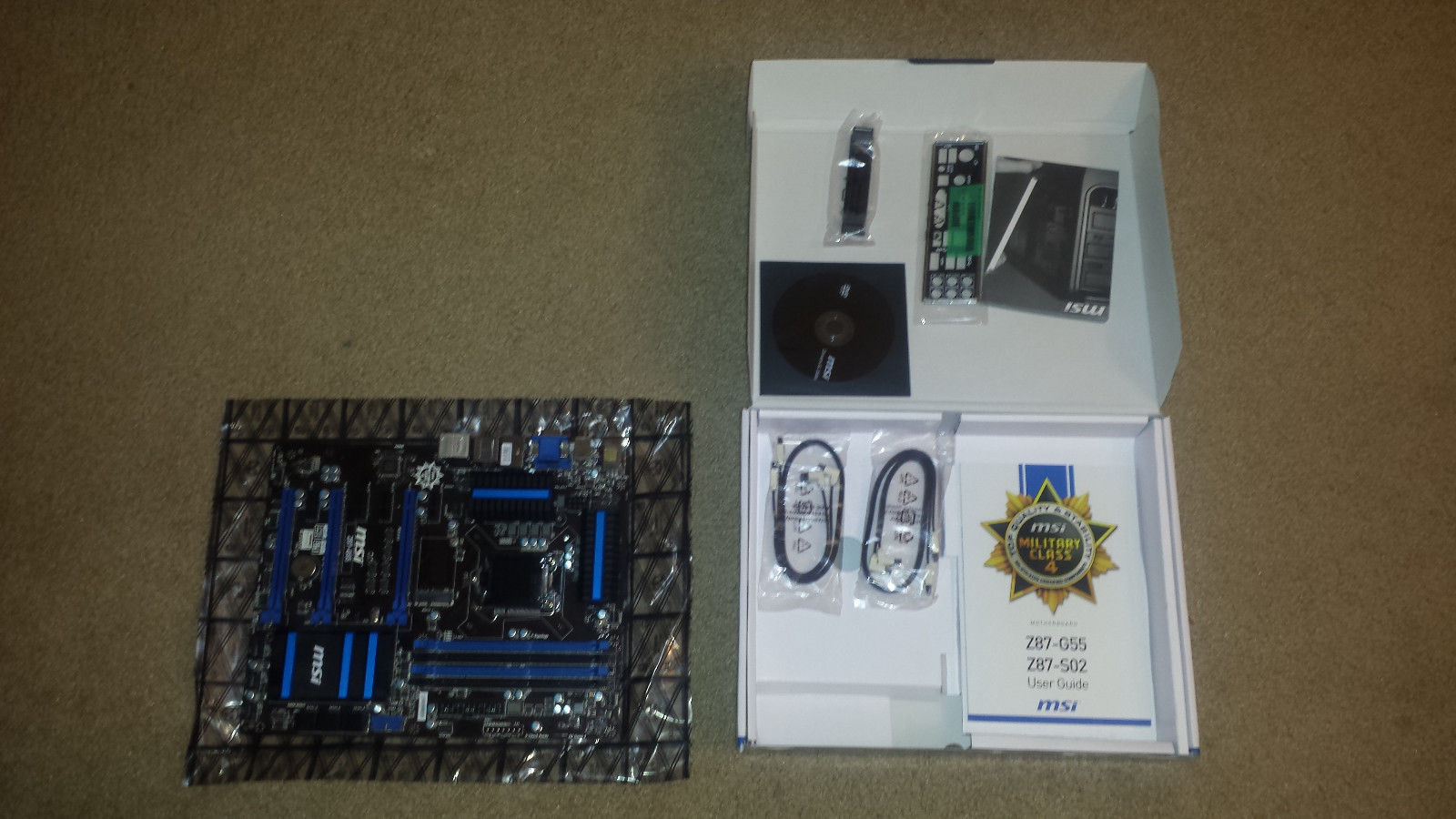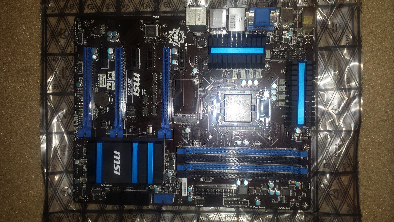 ახალი დედადაფა MSI Z87-G55, აქვს 3 ცალი PCI-X 16 3.0 სიჩქარით სამივე, ჩაურთველი, მოყვება ყველაფერი, ფასი: 240 ლარი