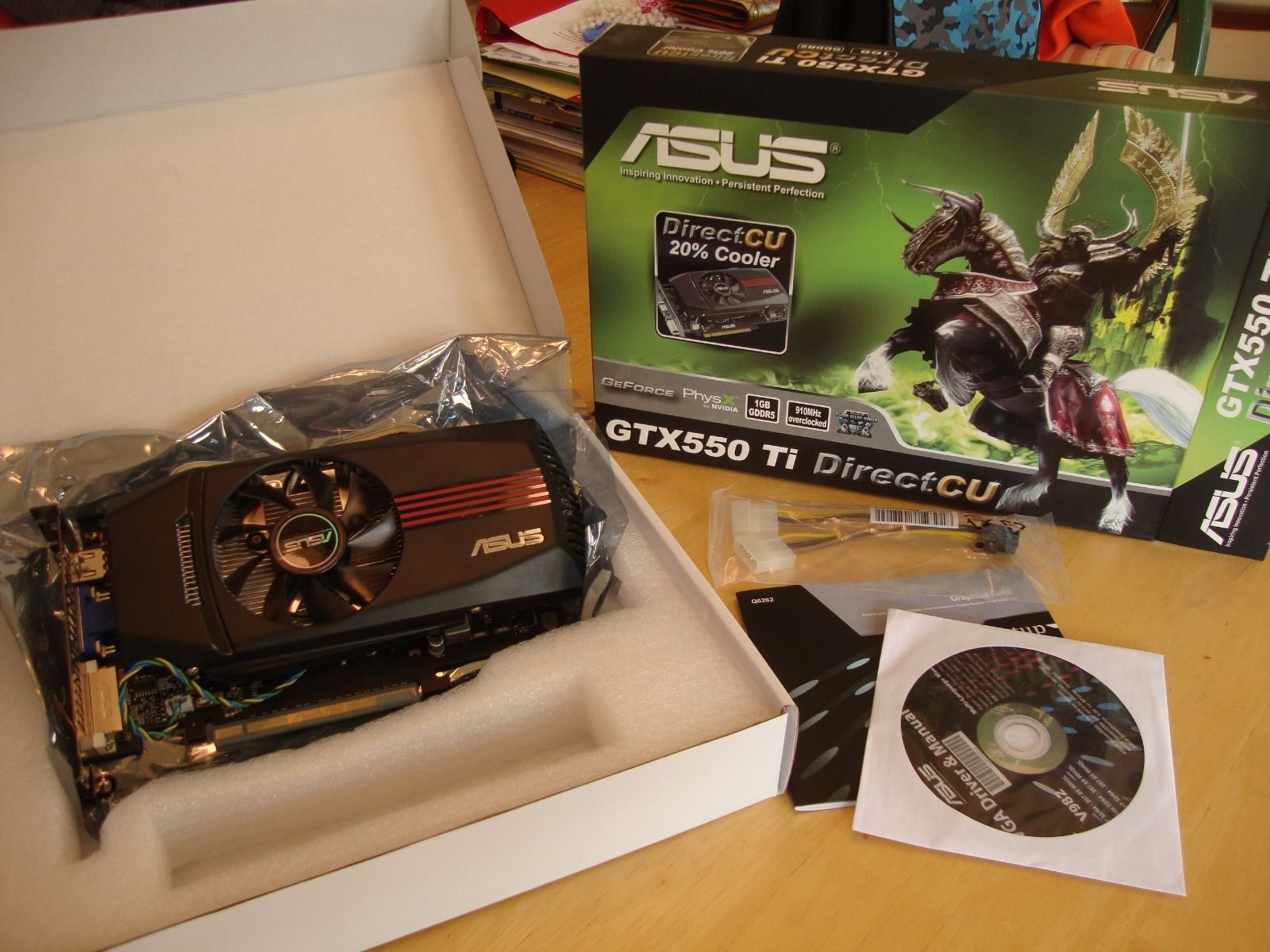 ASUS NVIDIA GeForce GTX 550 Ti ახალი თითქმის ყუთით საბუთებით ფასი 200 ლარი