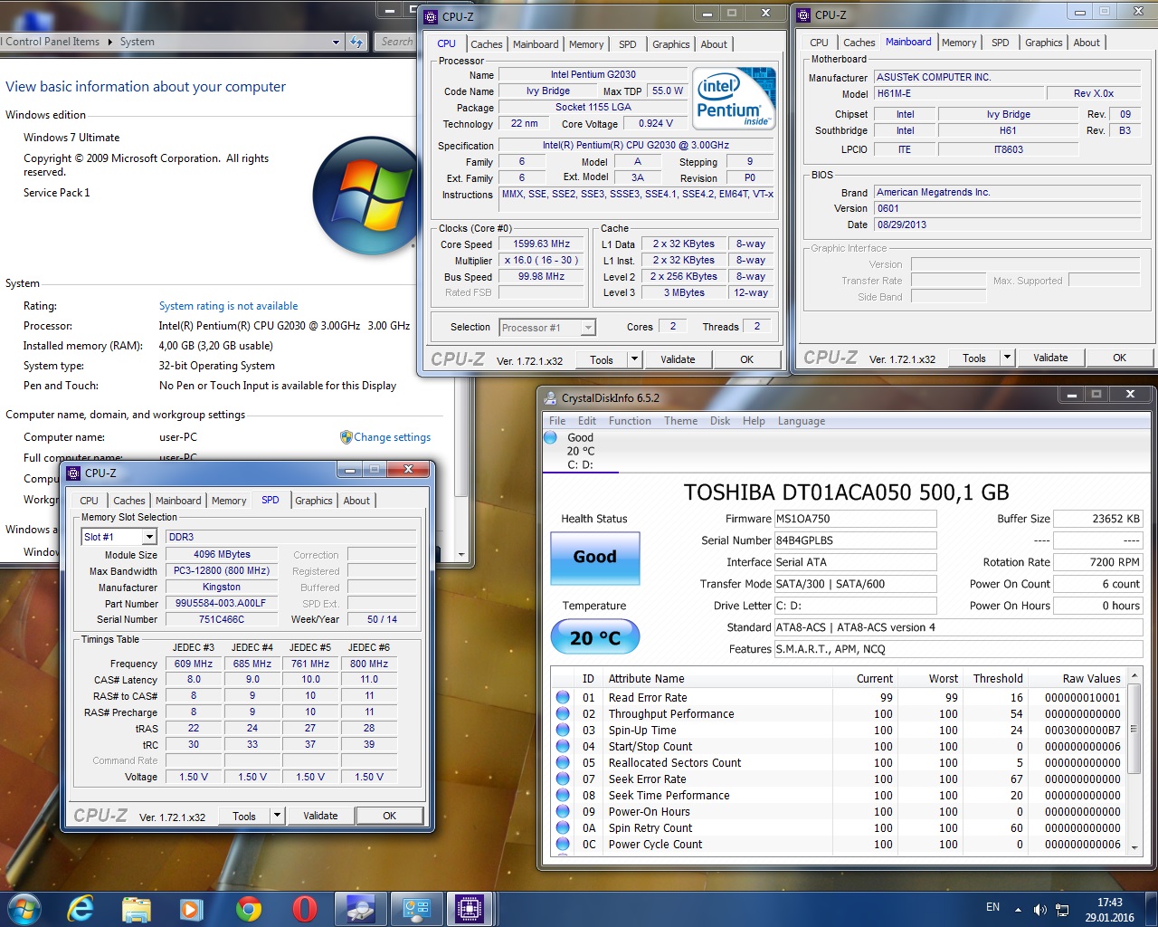 G2030 3.0 Ghz/4GB DDR3/500GB/P8H61/DVD RW