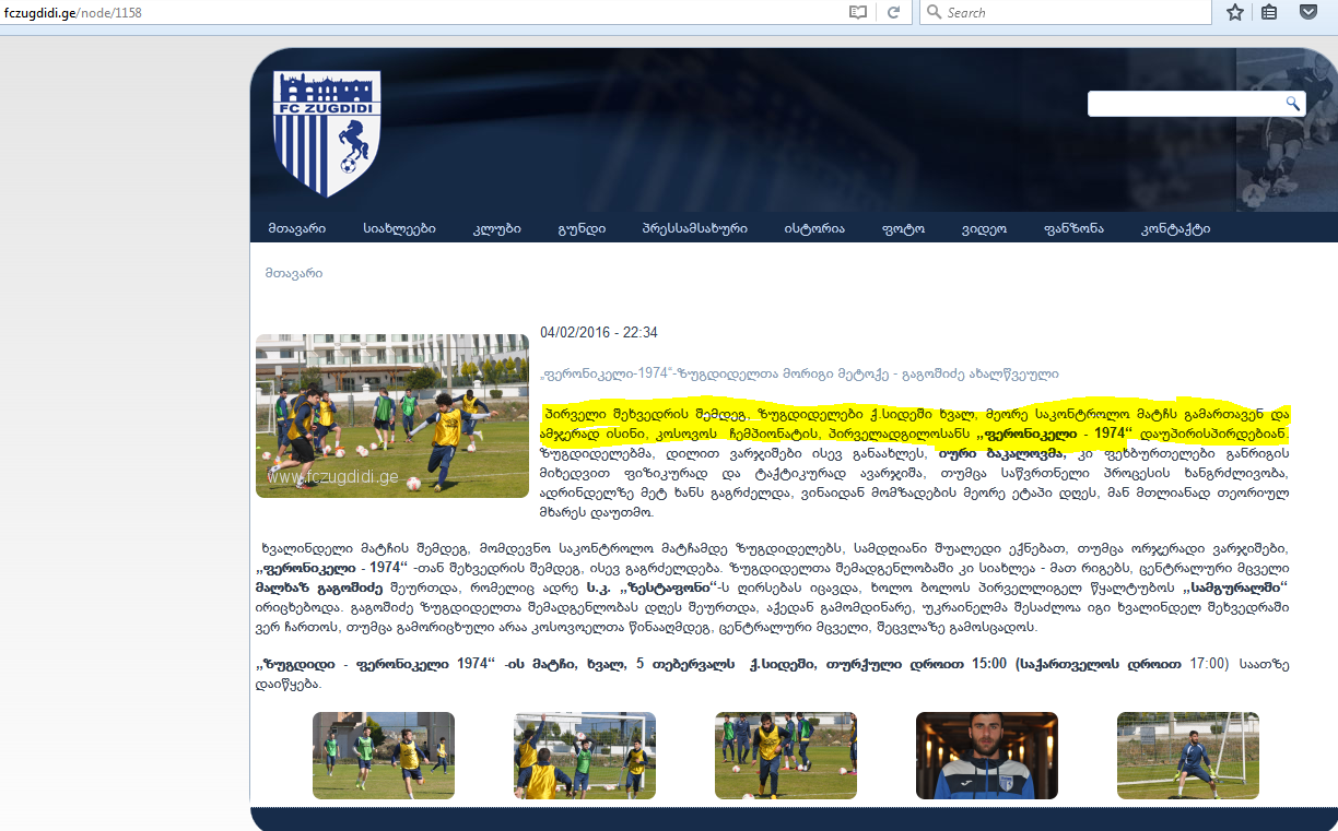 Turqi, 5 shkurt, 2016, Skuadra e Feronikelit ka arritur një fitore shumë të veshtirë përball skuadrës gjeorgjiane FC Zugdidi, e cila bënë pjesë në ligën e parë.
