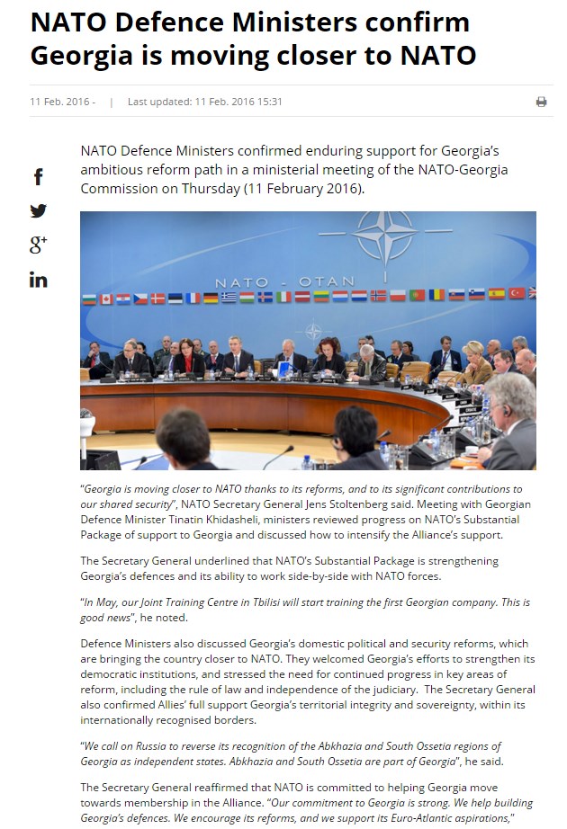 "აფხაზეთი და სამხრეთ ოსეთი საქართველოს ნაწილია", - დასძინა ნატო-ს გენერალურმა მდივანმა.