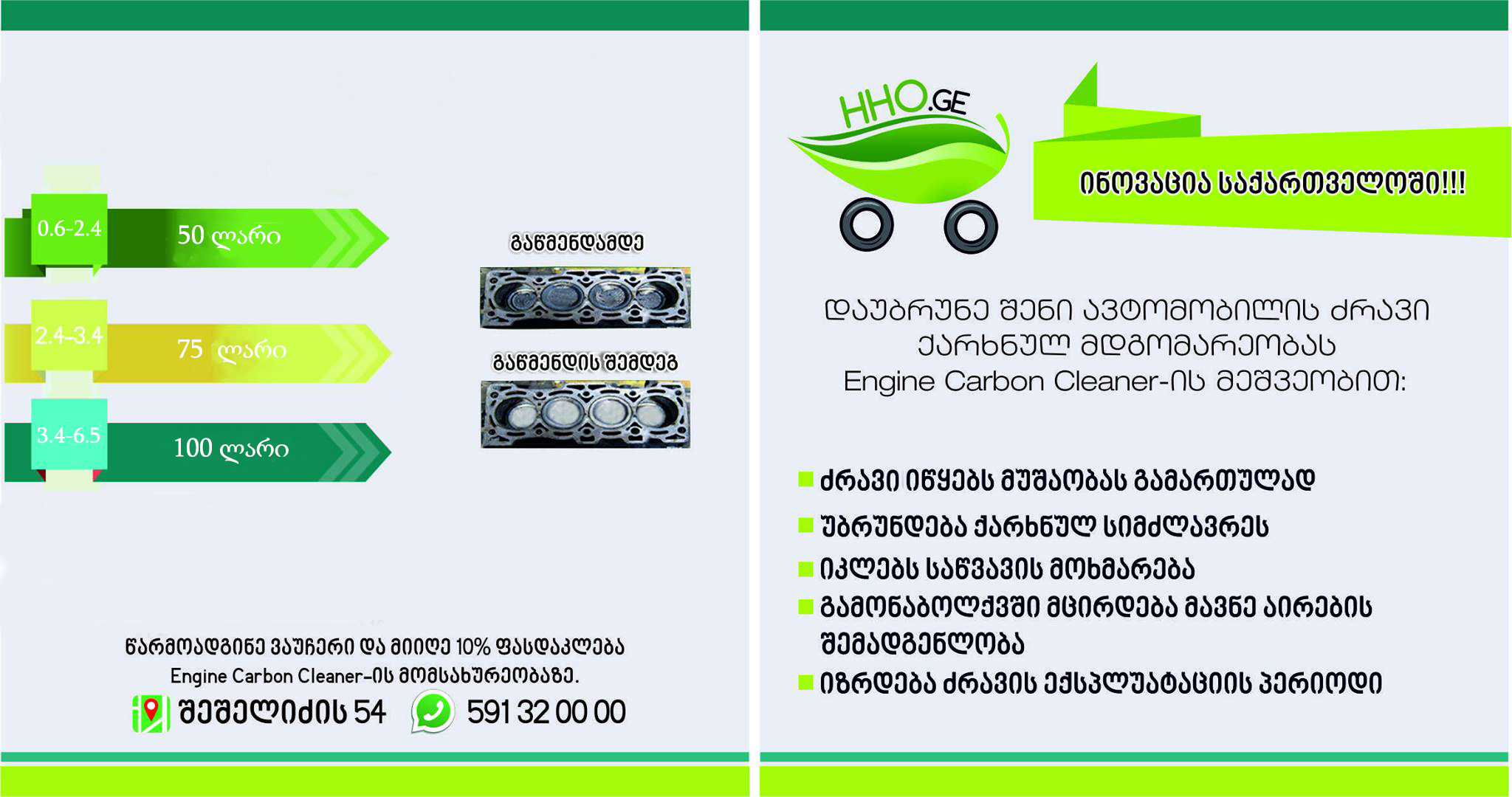 ძრავი უბრუნდება ქარხნულ მდგომარეობას, ძრავის უკენტაქტო წმენდა HHO Carbon Cleaner-ით