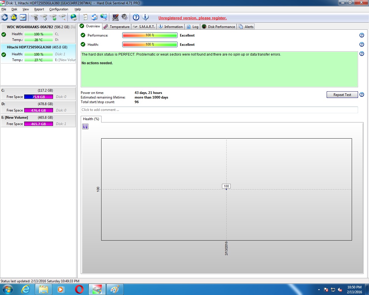 თითქმის ახალი Hitachi 500GB/7200RPM/16MB