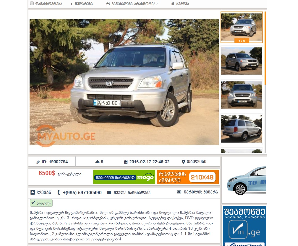 ასევე მანქანა უნდა იყოს ისეთ მდგომარეობაში როგორიც ჩემია!