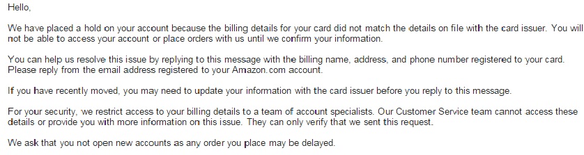 სალამი ბიჭებო.პატარა დახმარება მინდა. მეგობარს ვარეგისტრირებ ამაზონზე და რამდენჯერაც ვცადე იმდენჯერ არ გამომაწერინა მეუბნება ბარათის მისამართი არ ემთხვევა საცხოვრებელ მისამართსო, მარტო შიპინგ მისამართი შევიყვანე არადა. რამე სხვანაირად ხო არ უნდა გავაკეთო ხო არ იცით ვინმემ დამეხმარეთ რა . აი ეს მესიჯი მომდის მეილზე
