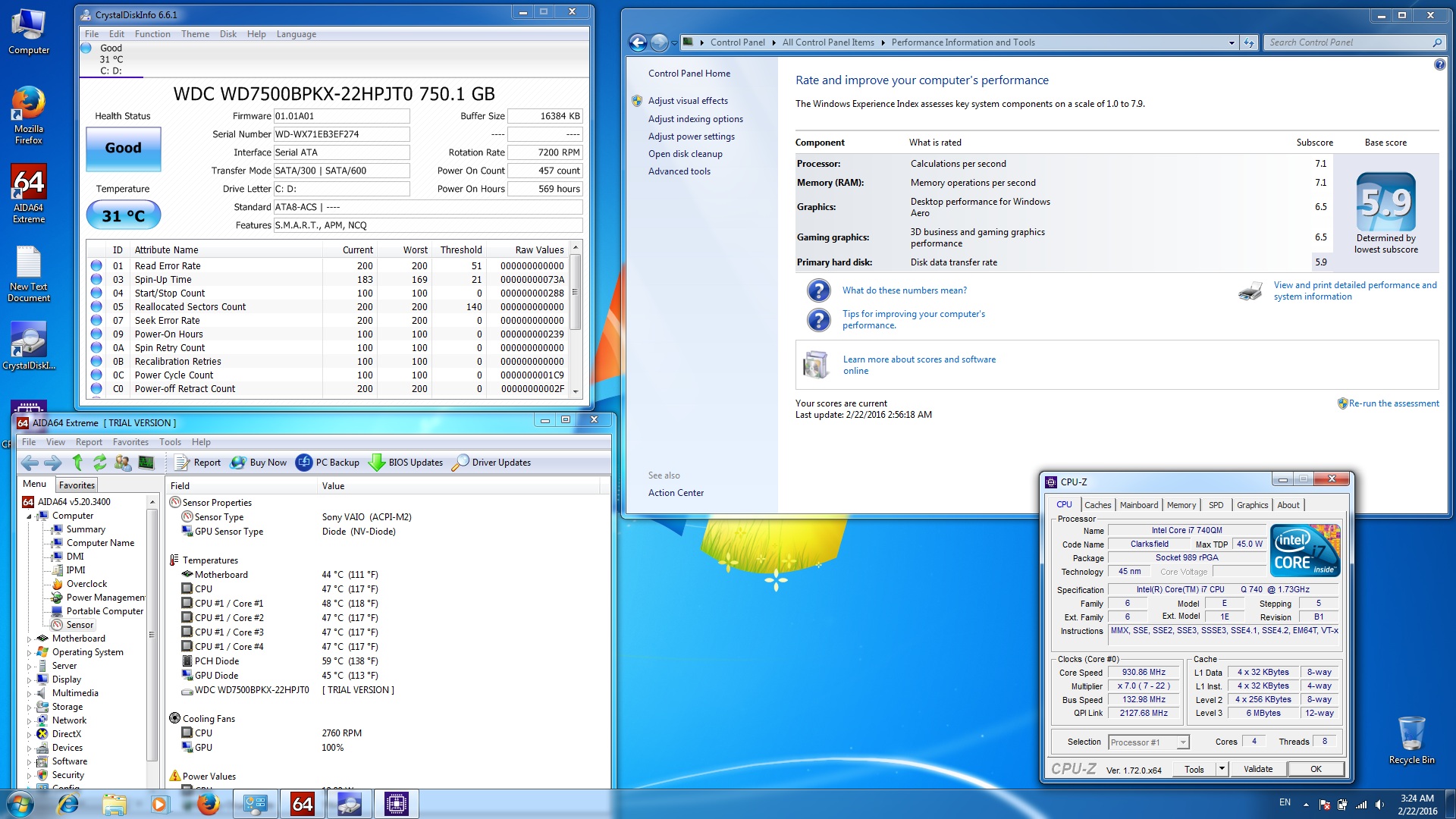 CPU - intel core i7 740QM (4 ბირთვიანი, 8 ნაკადიანი)