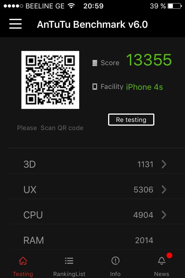 ესეც ამ Iphone 4S ის ბენჩმარკის შედეგი