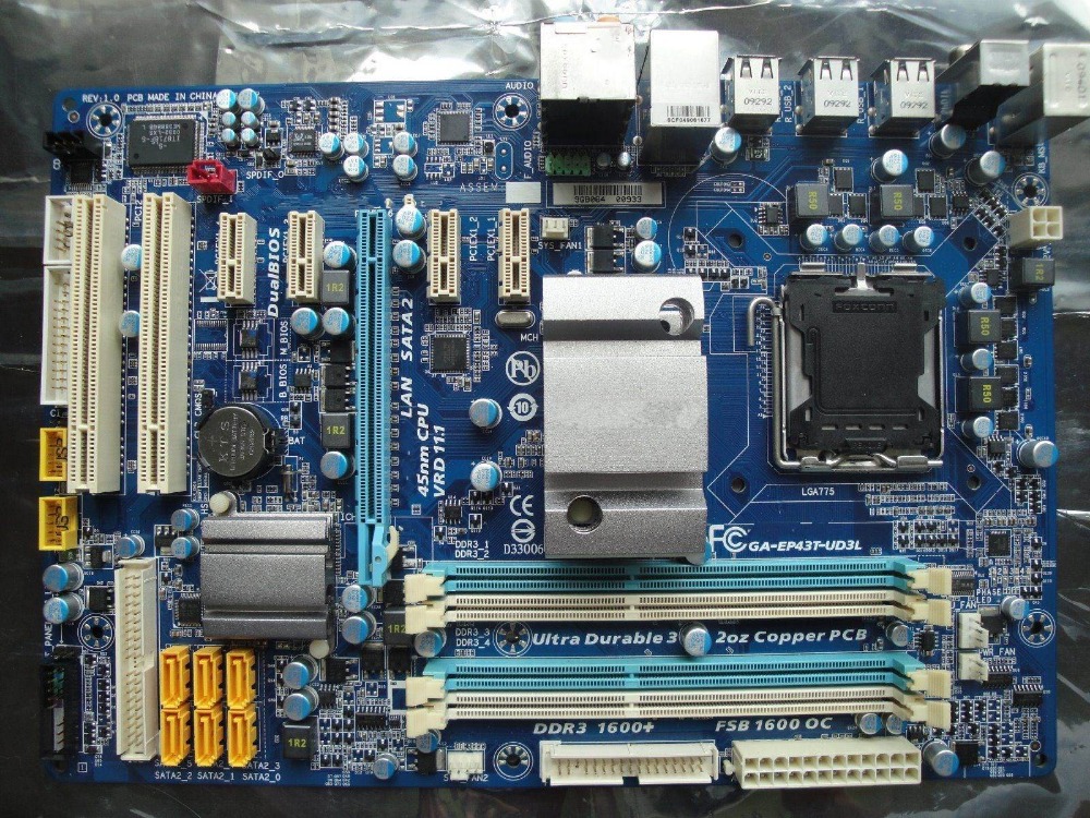 საკმაოდ კარგი მაზერია 4 სლოტიანი GIGABYTE GA-EP43T-UD3L უკანა პლანკით. ფასი: 80 ლარი