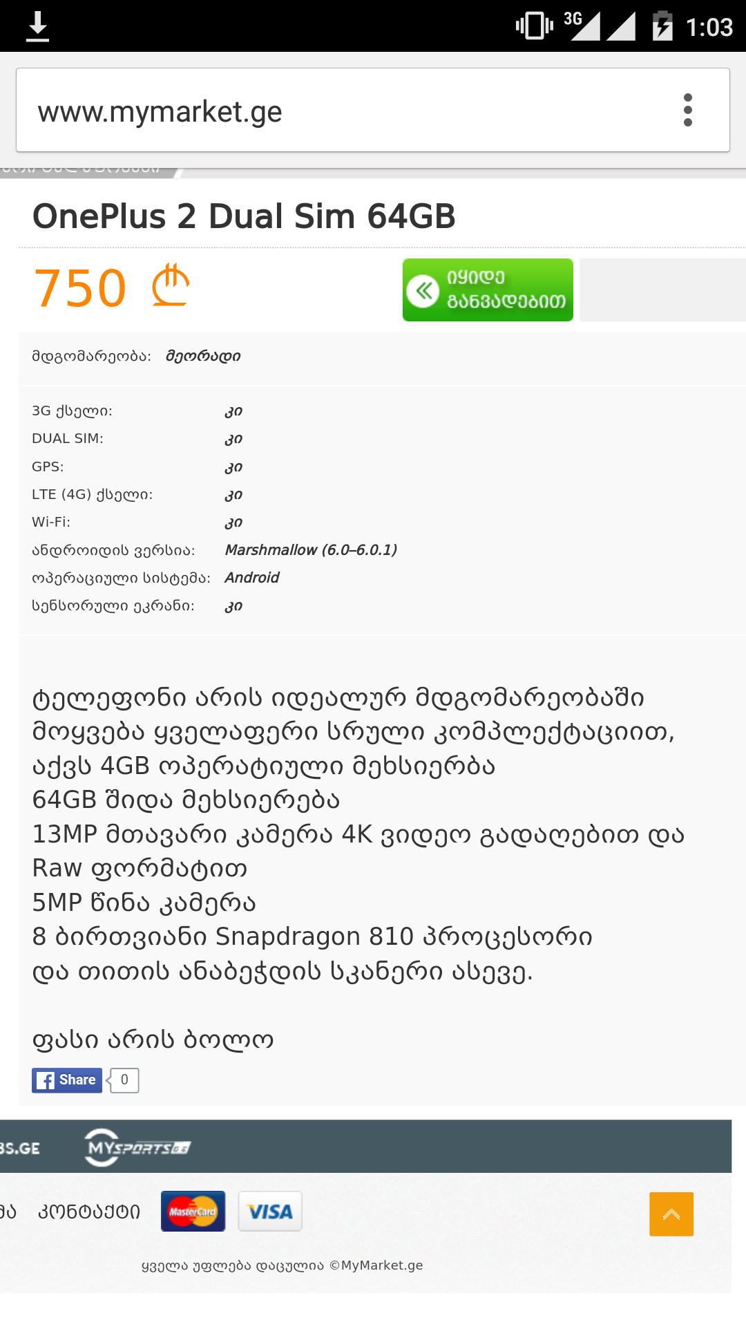 OnePlus 2 64GB, იყიდება