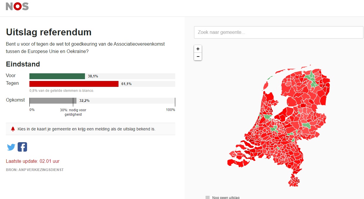 ნიდერლანდებმა უკრაინის EU-ში, მიღებას რეფერენდუმში არ დაუჭირა მხარი