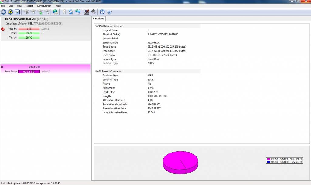 , HDD 1TB (Perf 100%)Health 0% კაი მუშა-იცვლება