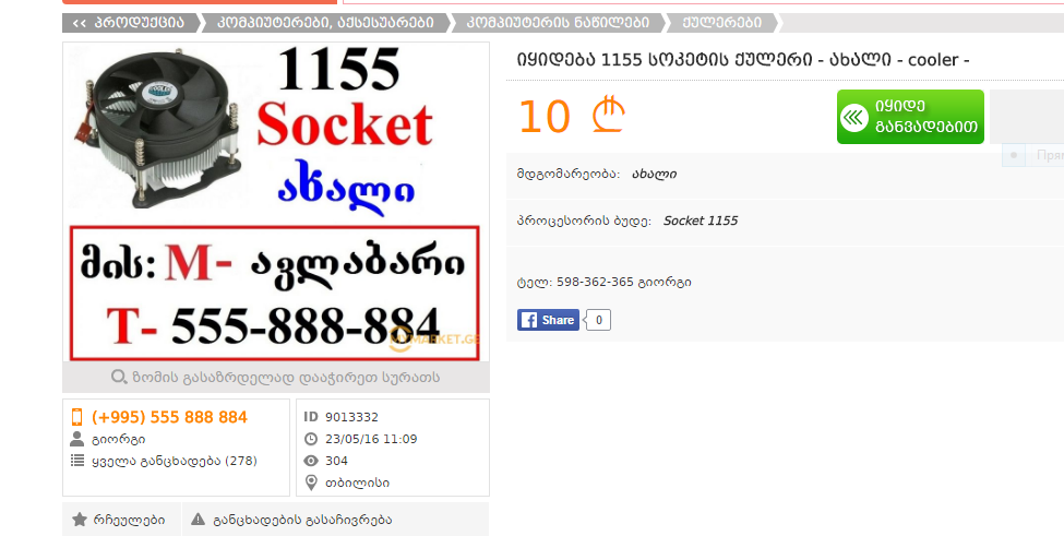 ვიყიდი გაგრილებას 1155 სოკეტზე