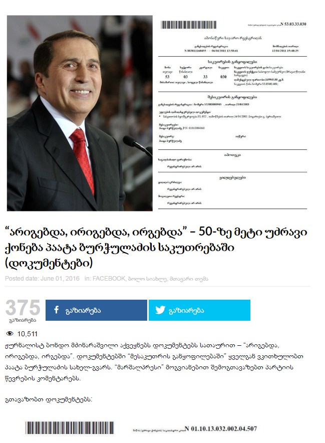 პაატა ბურჭულაძის 50 ბინა?, ამონაწერები რეესტრიდან