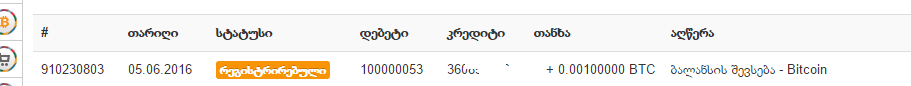 მინიმალური შენატანი 0,01000000 BTC მოგება დღეში 10% მაშინვე შეგიძლიათ მოხსნათ.