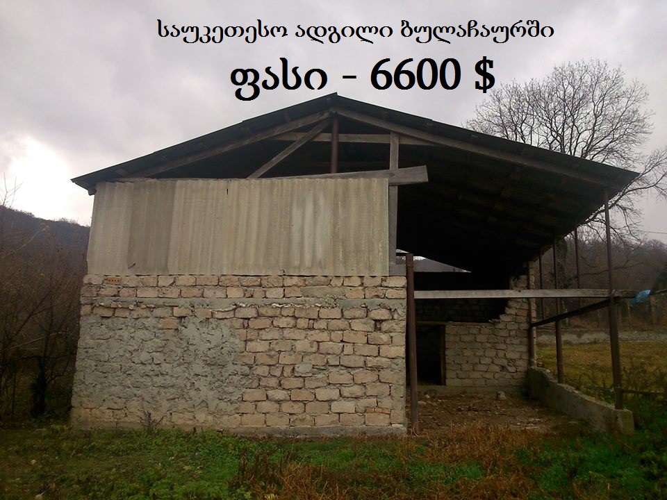 სასწრაფოდ და ყველაზე იაფად იყიდება ბულაჩაურის ცენტრში-(ფშავლების უბანში) -750კვ/მ. ფართობის მიწის ნაკვეთი, ნაკვეთშივე მდგარი აშენებული 2 სართულიანი კაპიტალური შენობით რკინა-ბეტონში (შავი კარკასი), მყარი საძირკვლით.