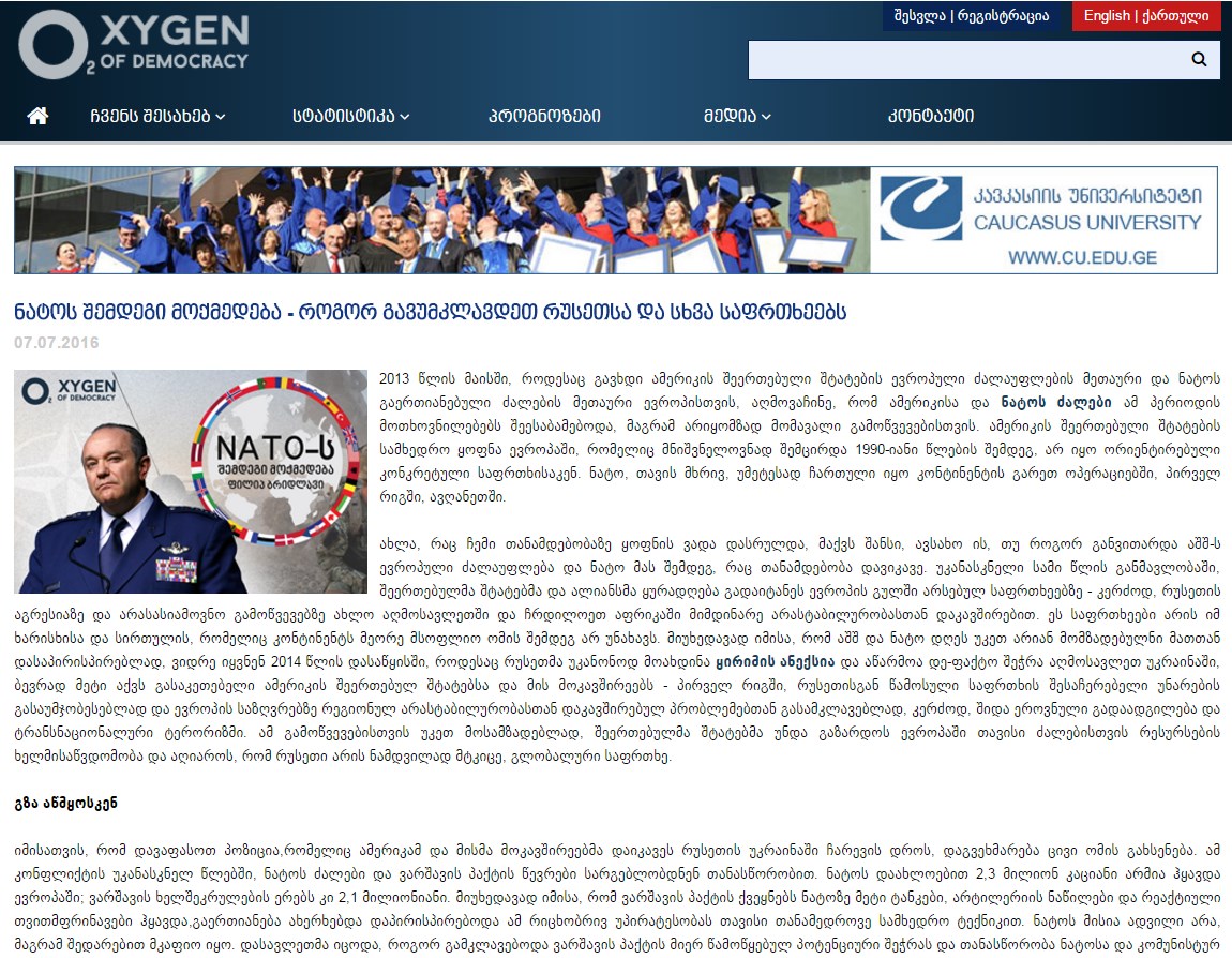 http://oxygen.org.ge/Details/NewsDetails.aspx?fid=50302013 წლის მაისში, როდესაც გავხდი ამერიკის შეერთებული შტატების ევროპული ძალაების მეთაური და ნატოს გაერთიანებული ძალების მეთაური ევროპაში, აღმოვაჩინე, რომ ამერიკისა და ნატოს ძალები ამ პერიოდის მოთხოვნილებებს შეესაბამებოდა, მაგრამ არიყომზად მომავალი გამოწვევებისთვის. ამერიკის შეერთებული შტატების სამხედრო ყოფნა ევროპაში, რომელიც მნიშვნელოვნად შემცირდა 1990-იანი წლების შემდეგ, არ იყო ორიენტირებული კონკრეტული საფრთხისაკენ. ნატო, თავის მხრივ, უმეტესად ჩართული იყო კონტინენტის გარეთ ოპერაციებში, პირველ რიგში, ავღანეთში.