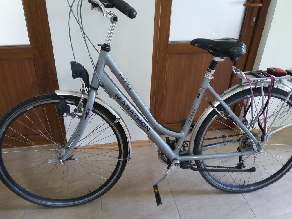 ველოსიპედი არის კარგ მდგომარეობაში. ჩამოტანილია გერმანიიდან. ყველა ნაწილი აქვს თავისი, არაფერი არ გაფუჭებია, არ გამიკეთებია. არის 7 სიჩქარიანი (გადამრთველი უკანა ბუდეში). ასევე აქვს წინა, უკანა და ფეხის ტორმუზი.