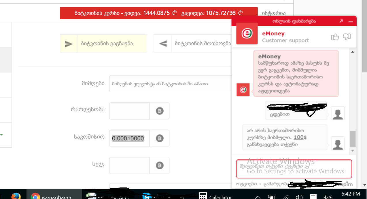 არ მქონია დიდი შეხება ბიტკოინთან. მეორედ დავარიცხინე ბიტკოინზე, წინაზე კურსში სხვაობა 80 ლარი ქონდათ და დავახურდავე. დასარიცხთან მიახლოებული თანხა მივიღე.