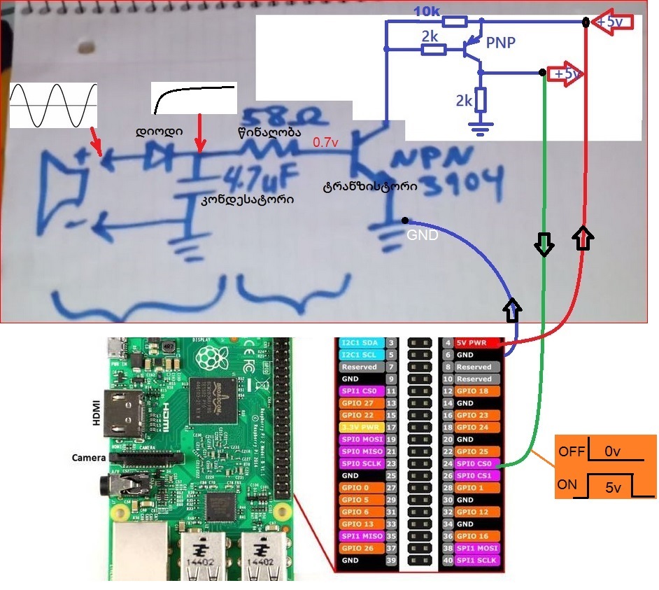 რასპბერის აქვს 5 ვოლტი!!! და დამატებითი დენის წყარო არ გჭიდება.