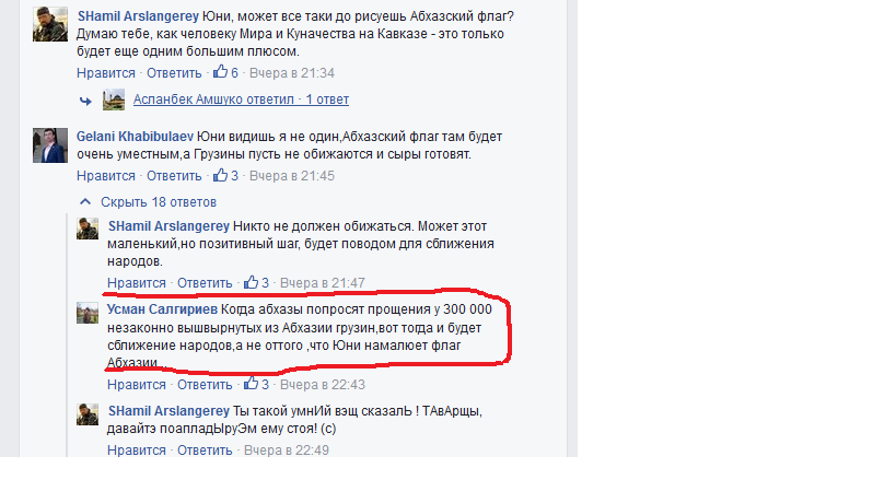 - სირცხვილია, როდესაც აფხაზეთის საზოგადოებრივი ავტორიტეტები ქართველის მკვლელობაზე ხმას არ იღებენ... თქვენ, არც ისე დიდი ხნის წინ, თბილისში ბრძანდებოდით და იქიდან დაბრუნებული მადლიერებით აღსასვე პოსტებს წერდით. თუ ქვეყანაში მიმდინარე პროცესებს გადავხედავთ, თქვენ, ჩვენ და კიდევ ძალიან ბევრ აფხაზს მოუწევს იქ ჩასვლა სხვადასხვა საკითხზე, მათ შორის ჯანმრთელობისა და ზოგჯერ სიცოცხლის გადარჩენისთვის დახმარების მისაღებად და თქვენი დუმილი, უხერხული ხომ არ არის? რა მნიშვნელობა აქვს, მოკლული ქართველი 30 წლის ახალგაზრდა ნასვამი იყო თუ არა, ან რა მნიშვნელობა აქვს აფხაზმა მესაზღვრემ აფექტის მდგომარეობაში ესროლა, თუ - არა; ფაქტია, რომ ახალგაზრდა კაცი მოკლეს და ოჯახი დაობლდა. თქვენ, ბატონებო და ქალბატონებო, როდესაც გაგიჭირდათ, ოჯახის წევრის გადასარჩენად თბილისში ჩასვლის სითამამე და ნამუსი გეყოთ, ახლაც უნდა გეყოთ სითამამე და ნამუსი და ხმა ამოიღოთ, რათა შემდეგ, თბილისში ჩასულები თქვენს სინდისთან და იმ ქართველებთან იყოთ მართლები; იმათთან, ვინც იქ თქვენიანის ჯანმრთელობასა და სიცოცხლეს გულშემატკივრობს; ხომ ამბობდით, რომ ქართველი ერი შეცვლილია, ჩვენი, საკუთარი თავის და იმ წარსულის მიმართ, რომელიც 90-იანი წლების ომის დროს ერთად გავიარეთ. გვახსოვს, თქვენი მოსაზრებები იმასთან დაკავშირებით, რომ საქართველო მეზობელი ქვეყანაა და მასთან ოდესმე რაღაც ფორმით მოგვიწევს ურთიერთობა. ახლა დუმხართ. რატომ? არ არის ეს დღეს პოლიტიკურად მომგებიანი?! არადა, თქვენს მიერ რუსეთის ორმაგ სტანდარტებში დადანაშაულებაც გვახსოვს და თქვენც იგივეს აკეთებთ!