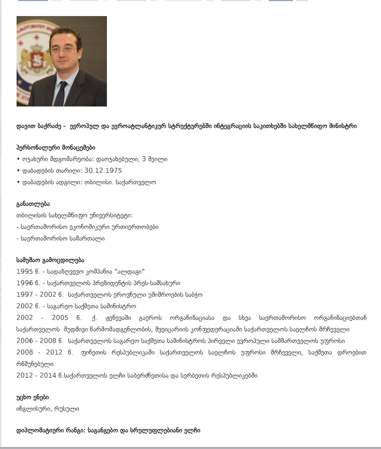 აშშ-ში საქართველოს ელჩად დავით ბაქრაძე ინიშნება