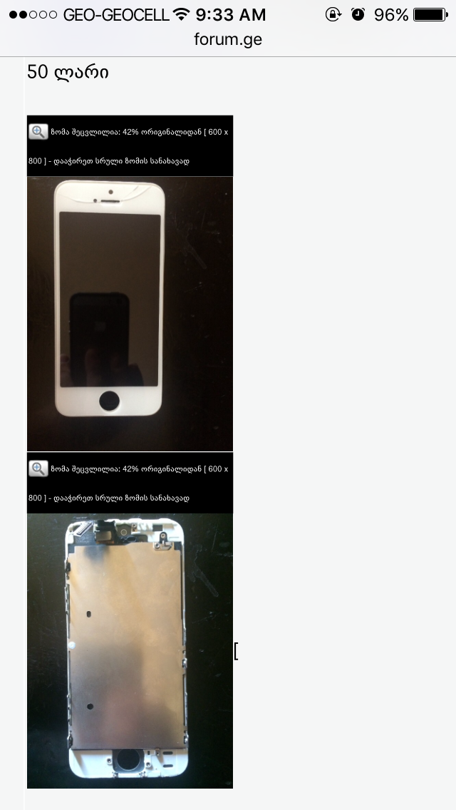 iphone 5s მუშა ეკრანი თეთრი 50 ლარად