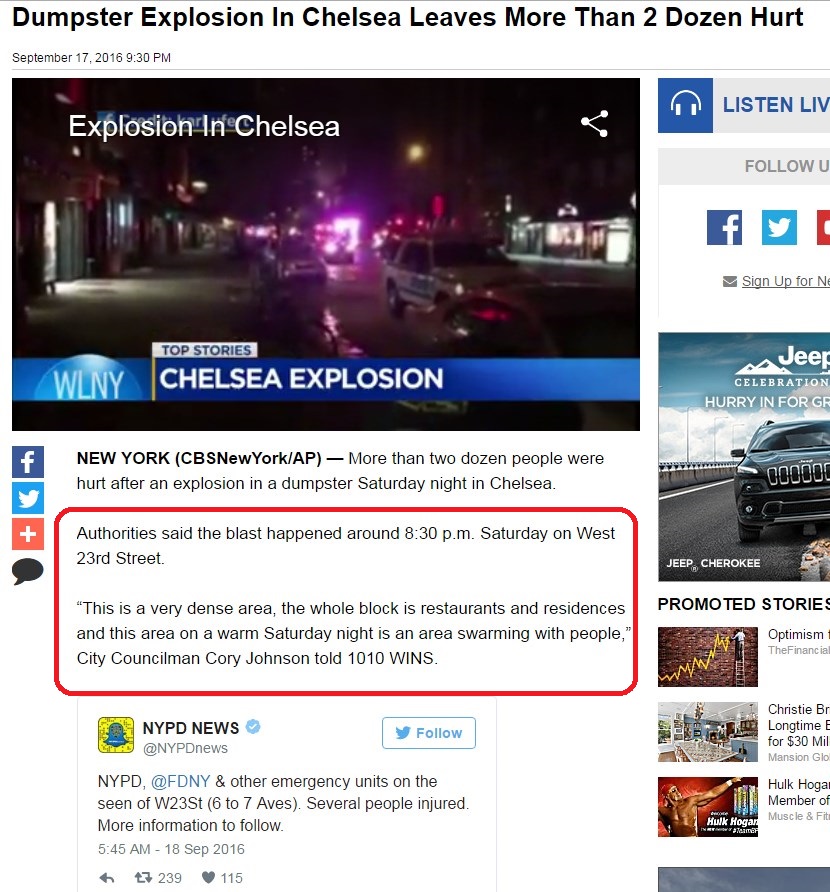აფეთქება ნიუ-იორკში, პირდაპირი