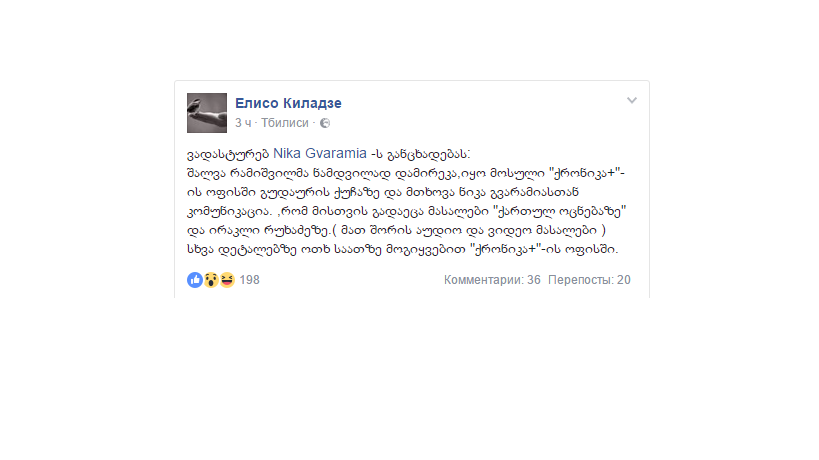 რამიშვილს სურდა ნიკა გვარამიასთვის ქართულ ოცნებაზე, მასალების გადაცემა ელისო კილაძე