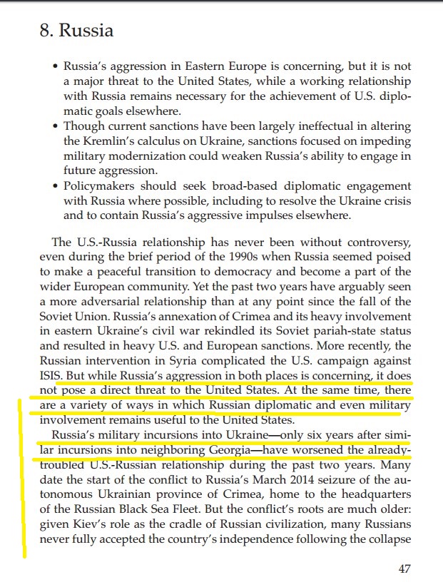 აშშ ახალი ადმინისტრაციის ახალი საგარეო პოლიტიკა, CATO-ს რეკომენდაციები