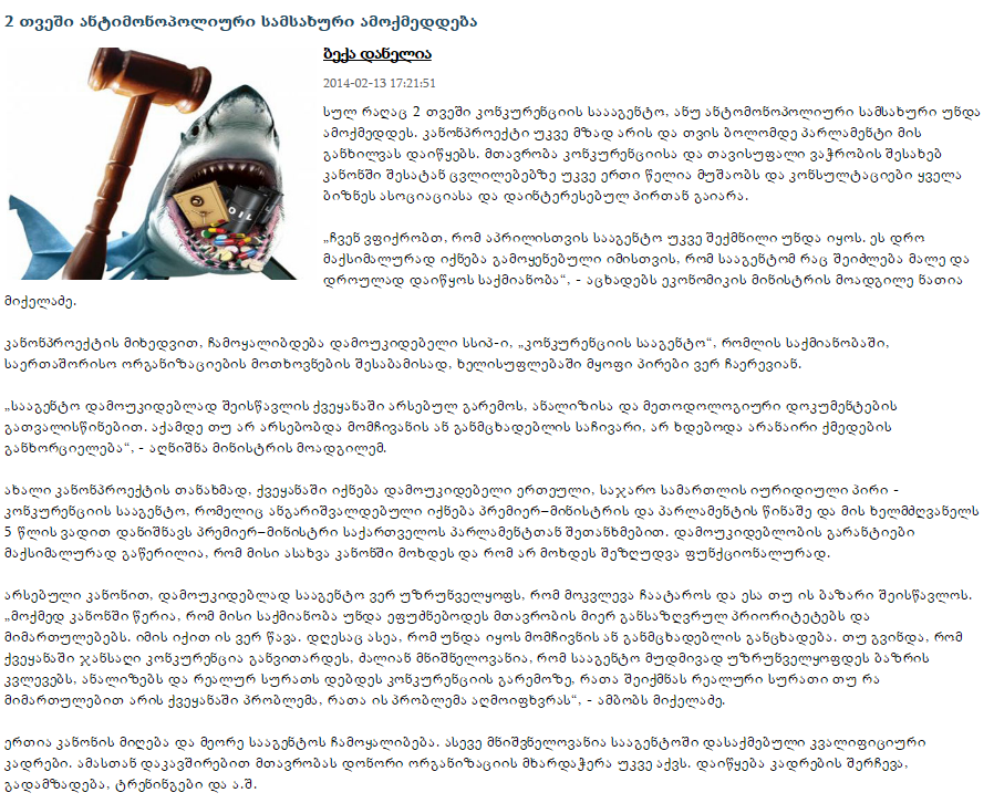 ბიზნესსამართლის სპეციალისტი აკაკი ჩარგეიშვილის განმარტებით, სააფთიაქო ბიზნესში მსხვილი საბანკო ჯგუფის შესვლა ნიშნავს, რომ არსებული მოთამაშეები ვერ გაუძლებენ კონკურენციას, რადგან საქართველოს ბანკი უპირატეს მდგომარეობაში საკუთარ ჯგუფს ჩააყენებს. ჩარგეიშვილის თქმით, ამ ნაბიჯით კიდევ ერთხელ დადასტურდა, რომ საქართველოში თითქმის ყველა სფეროში ბიზნესი ბანკებმა წაიღეს და კერძო ბიზნესების განვითარება აღარ ხდება. მისივე თქმით, ბაზარზე დარჩებიან მხოლოდ ბანკების მიერ მართვადი კომპანიები.