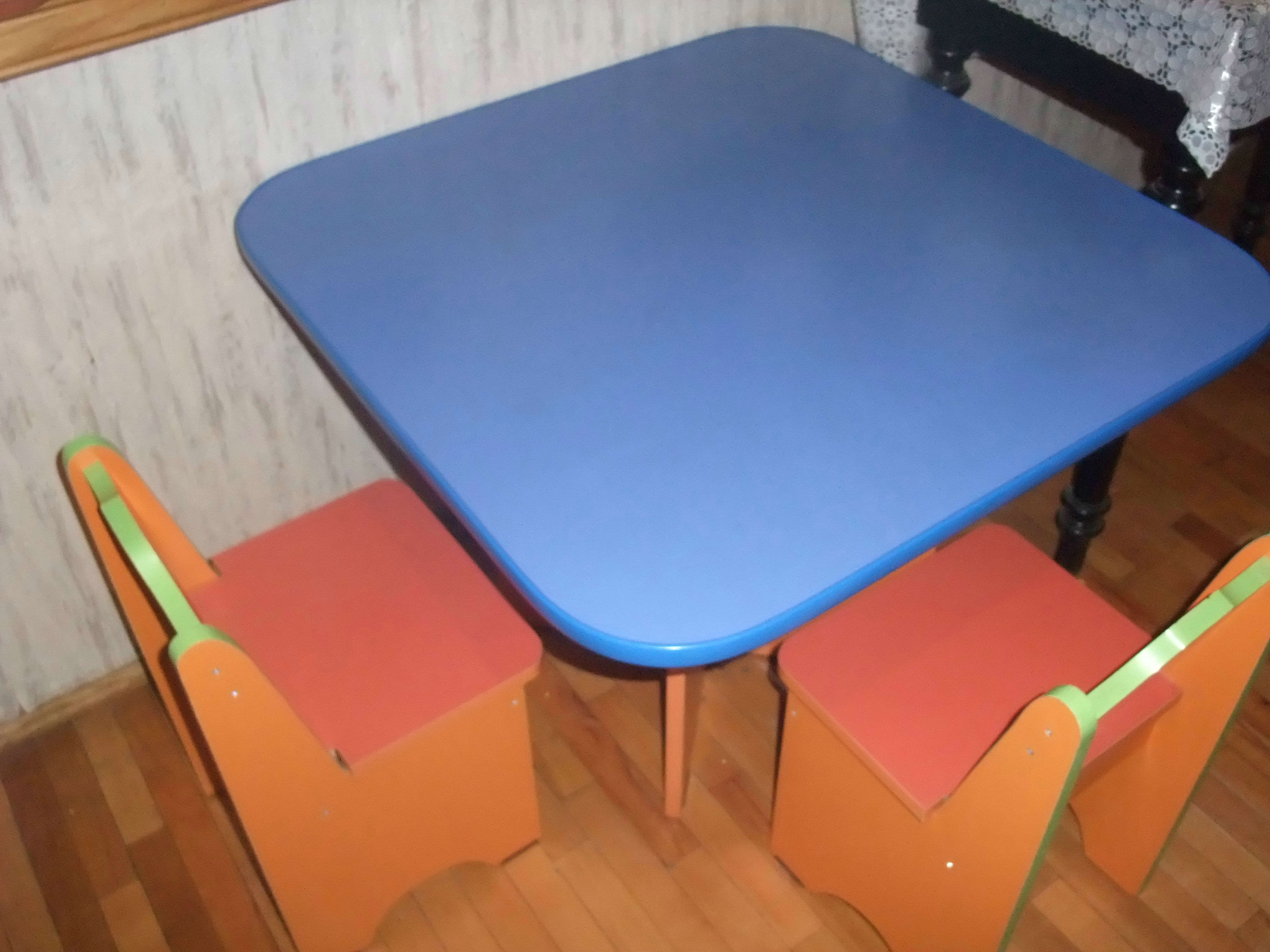 იყიდება საბავშვო მაგიდა, 2 სკამით, მაგიდის ზომა 80სმX80სმ, სიმაღლე 60 სმ. დეფექტების გარეშე.