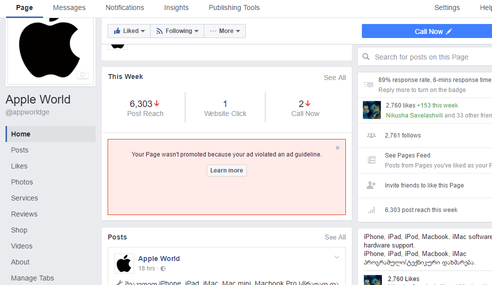 მოკლედ ჩვეულებრივად ვბუსტავდი პეიჯს, და მიქონდა გუშინ აურია და მიწერს რო არ ესაბამება წესებს პოსტები, მარა არც პრომოუტს უშვებ და ადრე რაც დაბუსტული იყო არც იმას მაშვებინებს, ბარათზე ქეში არის რო წაიღოს თან წინა თესქის 5 $ პეი ნავ მივეცი და ვერ ვხვდები, ექაუნთI დამიბლოკა რეკლამის თუ პეიჯი გააჩერა თუ რა უნდა ? მიზეზს არ წერს მეილზე არ მპასუხობენ გქონიათ მსგავსი სიტუ?