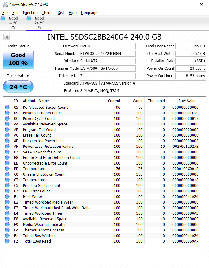 Intel SSD S3500 Series 240 Gb - 2.3 Tb-მდე ჩაწერით.