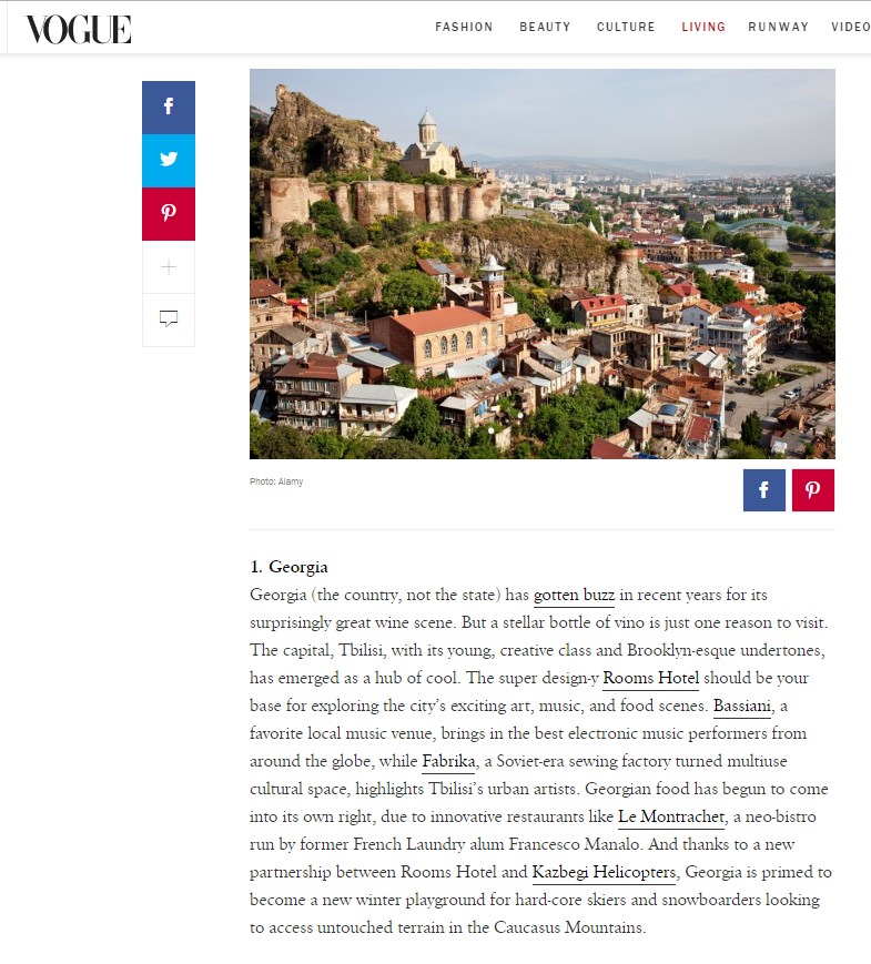 http://www.vogue.com/13515667/top-travel-destinations-2017/ცხელი (მოდური) ადგილები, რომლებიც აქამდე მიუწვდომელი იყო: