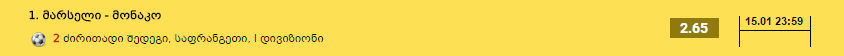 აი ვჭობდით ეხლა მე და ბერები და მონაკოს ორიანიო მარსელთან, ვერ შევედავები მეც მჯერა. 2.65 კოეფიციენტად. სახლები აქვთ ჩადებული ამათ და მივყვები მეც ოლინში