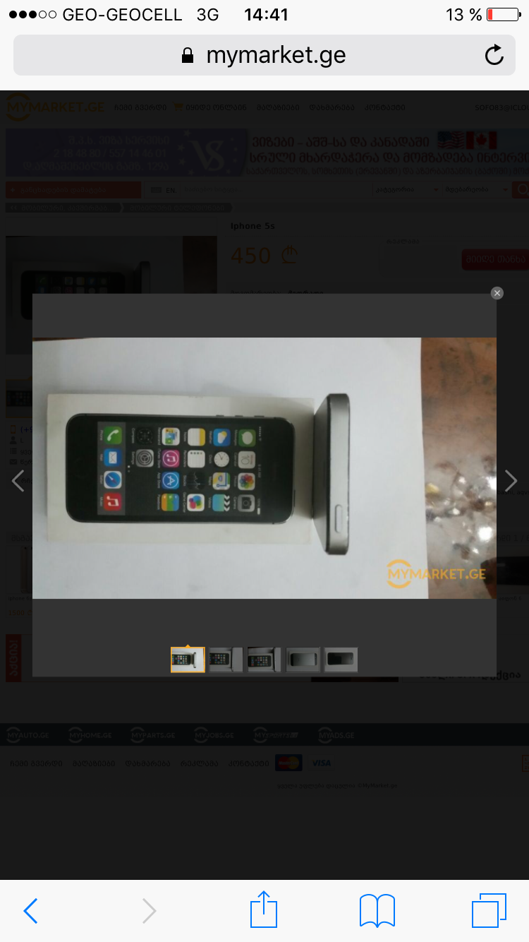 iphone 5S მოყვება ყუთი დამტენი უეზბი uzb 450 ლარი