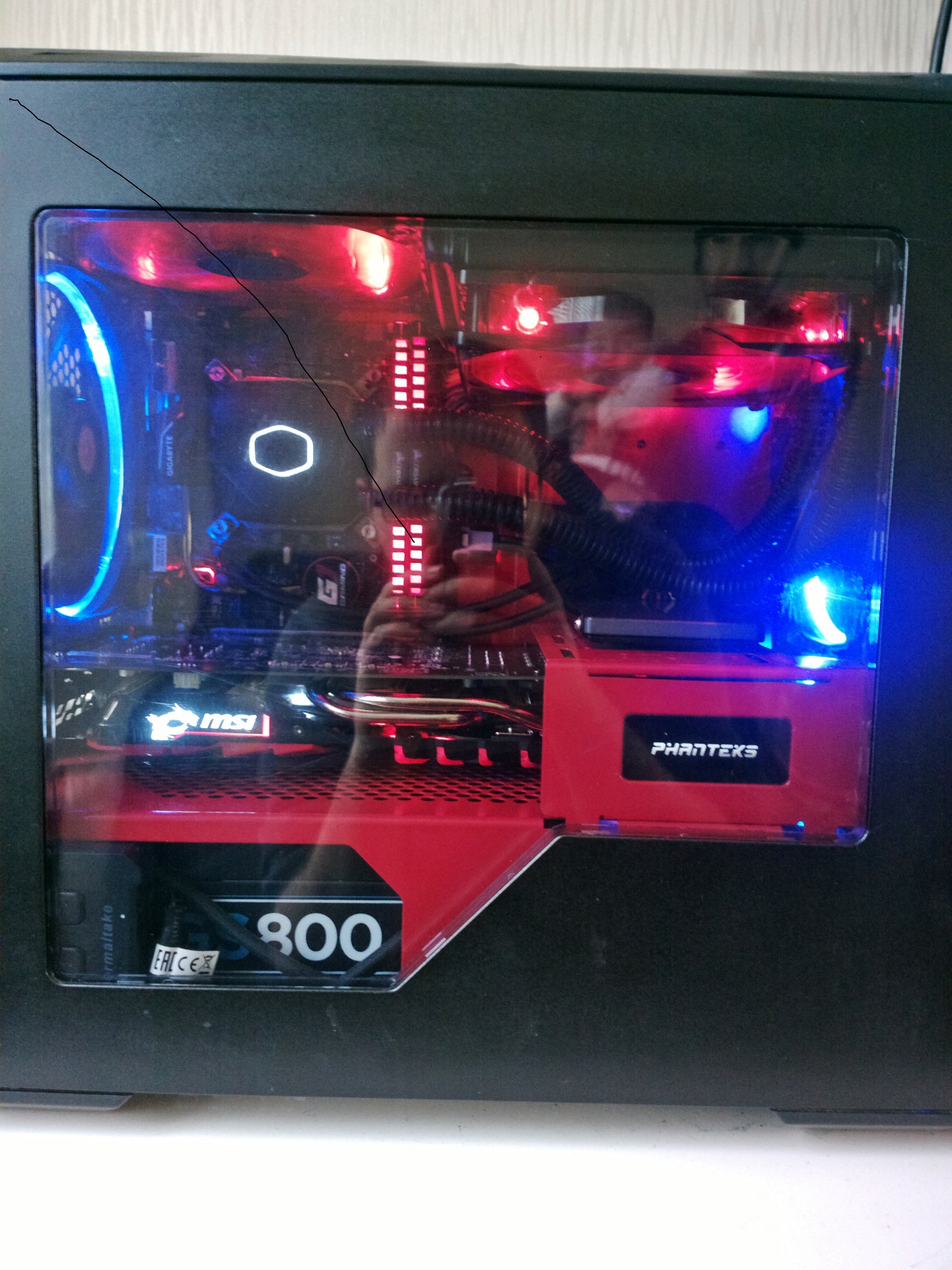 case-phanteks Enthoo Evolv ITX Mini-ITX Chassis with Window +2ცალი AeroCool Shark 140mm Devil Red LED Fan
