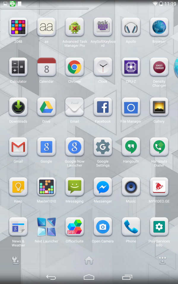 დგას Nexus ROM ანდროიდი 4.4.4 ვერსია. ჩვეულებრივად ინსტალირდება ყველა პროგრამა. შეიძლება უფრო ახალი სისტემის დაყენებაც.