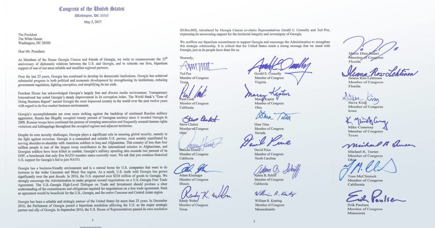 ამერიკელი კონგრესმენების მიმართვა ტრამპს, საქართველოს მხარდამჭერი წერილით