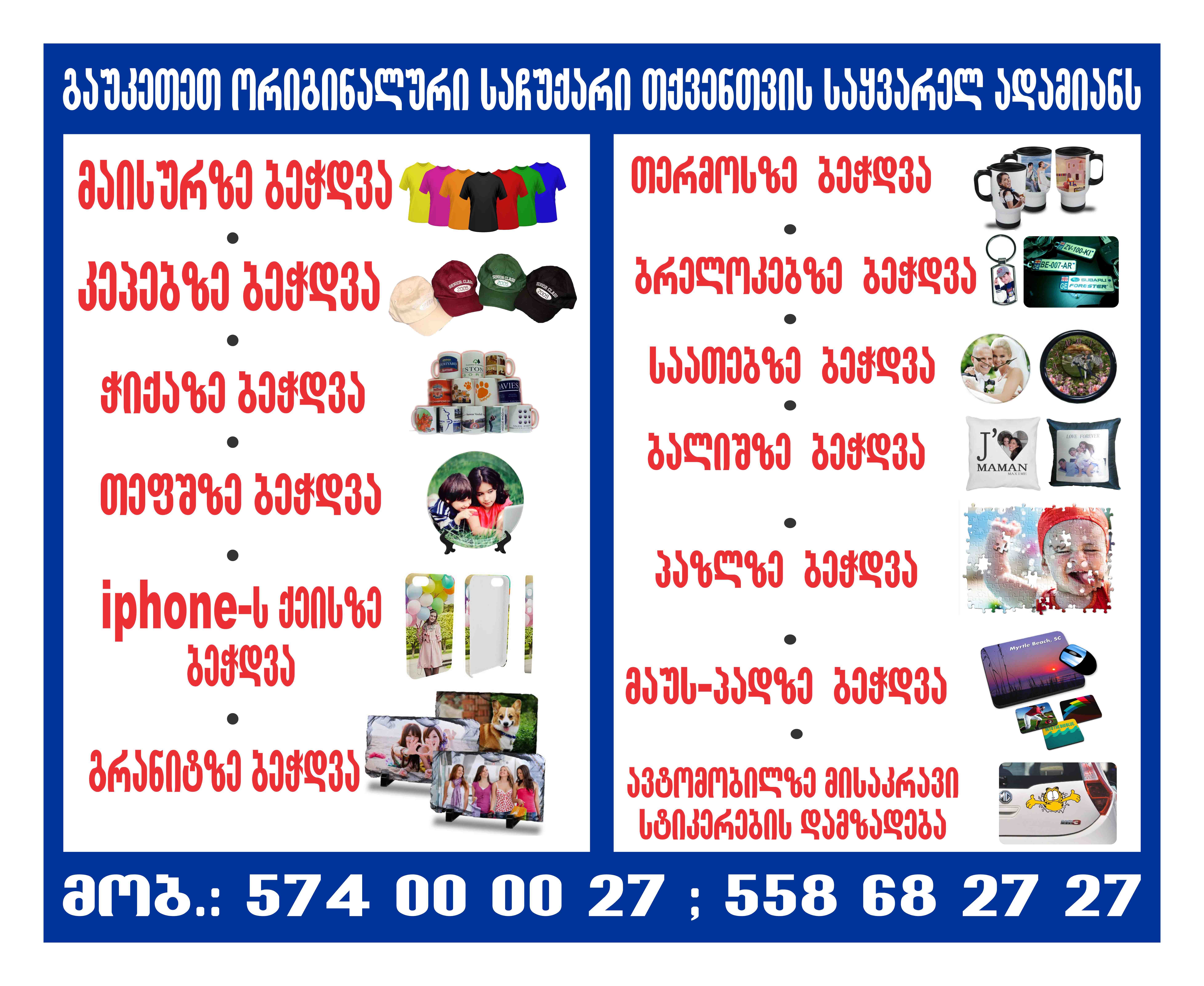 , მაისურზე ჭიქაზე ბეჭდვა და სხვა მრავალი მომსახურება