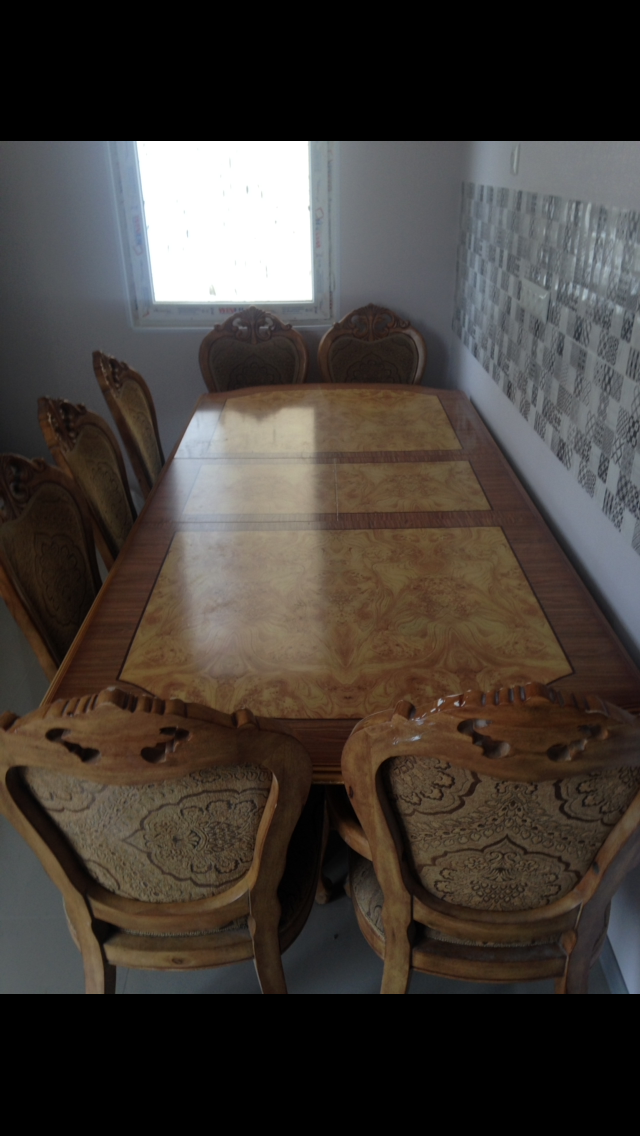 ძალიან მაგარი მაგიდაა. იყიდება ნახევარ ფასად. აქვს თავისი 7 სკამი. იშლება და საკმაოდ დიდი მაგიდაა, 15 კაცი თავისუფლად ეტევა.. სურათებზე რაც ჩანს ორი მაგხელა ხდება. მასიური ხეა. ამ ფასად ნამდვილად ვერ იყიდით ასეთ მაგიდას. ასეთი სკამი მინიმუმ 200 ლარი ღირს. სუფთა ხის მასალა. ლამაზი დეკორებით. ფასი ბოლოა!
