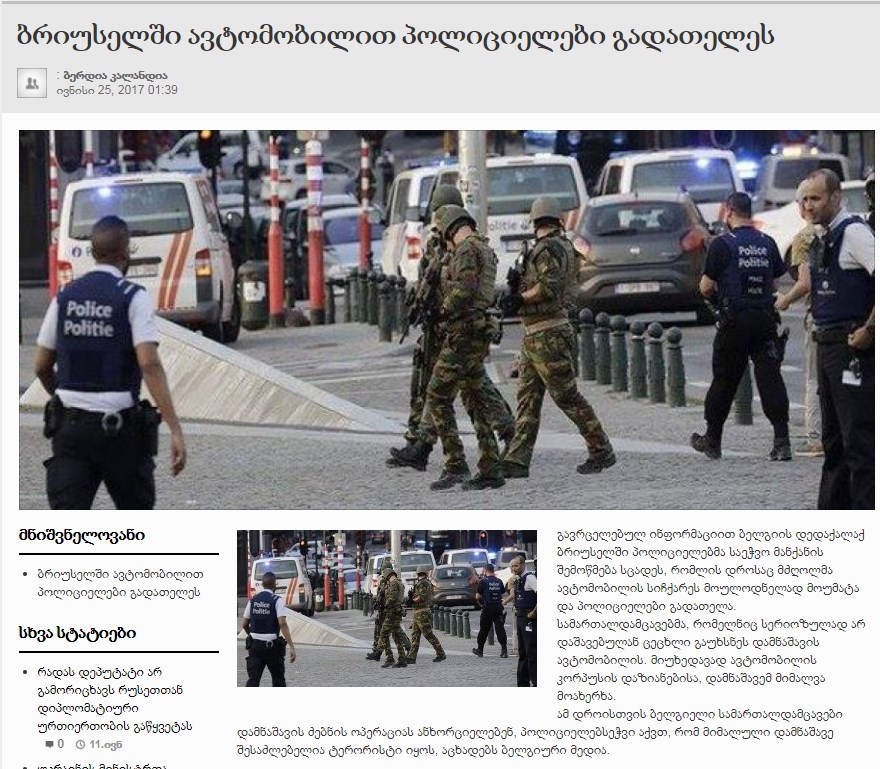 http://www.timer.ge/briuselshi-avtomobilit...ebi-gadatheles/გავრცელებულ ინფორმაციით ბელგიის დედაქალაქ ბრიუსელში პოლიციელებმა საეჭვო მანქანის შემოწმება სცადეს, რომლის დროსაც მძღოლმა ავტომობილის სიჩქარეს მოულოდნელად მოუმატა და პოლიციელები გადათელა.